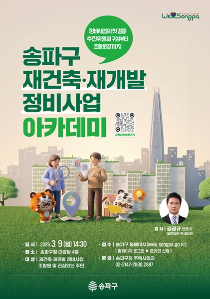 [아유경제_부동산] 송파구, 전 구민 대상 ‘재건축ㆍ재개발 정비사업 아카데미’ 개최