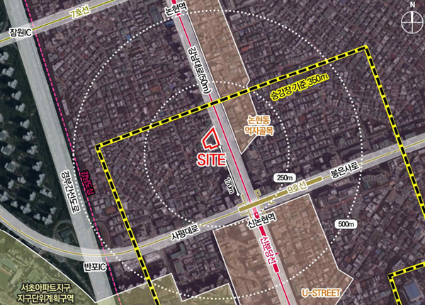 서초구 강남대로 499(반포동) 일원 2742.5㎡를 대상으로 하는 반포동 737-3 일대 역세권 활성화사업은 연면적 약 3만8908㎡ 지하 8층~지상 20층 규모의 업무시설, 근린생활시설, 문화ㆍ집회시설을 함께 들어서는 복합 시설로 개발하는 내용을 골자로 한다.