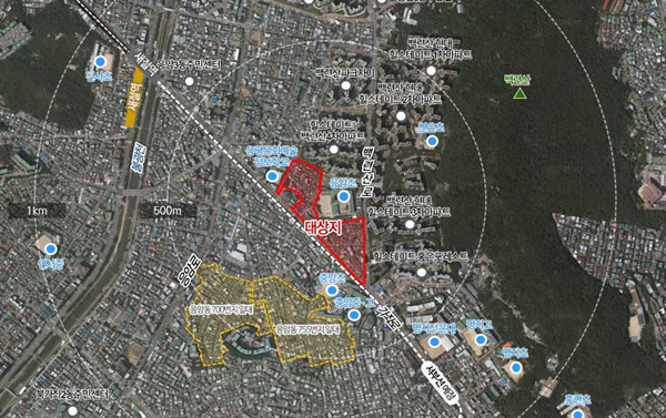 대상지는 1970년대에 형성된 저층 노후 주거지다. 보행과 차량이 혼재된 협소한 도로, 일방통행과 시간제 통행 제한으로 교통이 불편한 상황이다. 과거 도시정비사업이 추진됐으나 추진위 운영이 중단돼 2017년 정비구역이 해제됐고, 이후 세 차례 신속통합기획 후보지 공모에서도 북측 학교 인접에 따른 사업성 저하 우려로 미선정되는 등 부침을 겪은 바 있다.