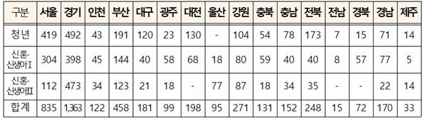 올해 모집 예정 물량은 청년 9112가구, 신혼ㆍ신생아 8140가구 등 총 1만7252가구다. 주거 수요가 집중된 수도권에 전체 공급 물량의 63%인 1만923가구를 공급한다.