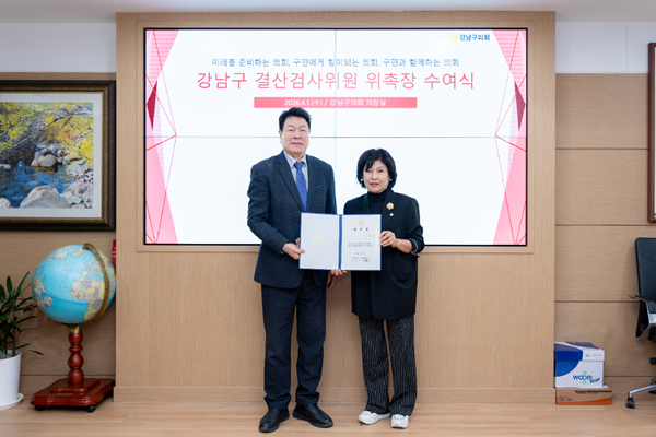 [아유경제=조현우 기자] 강남구의회 이향숙 의원(삼성1ㆍ2동, 대치2동, 국민의힘)은 이달 1일 강남구의회 의장실에서 열린 `2025회계연도 결산검사위원 위촉식`에서 대표위원으로 선임돼, 본격적인 결산검사에 착수했다고 밝혔다.