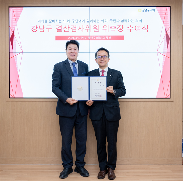 [아유경제=조현우 기자] 강남구의회 윤석민 의원(개포1ㆍ2동ㆍ4동, 국민의힘)은 이달 1일 강남구의회 의장실에서 열린 `2025회계연도 결산검사위원 위촉식`에서 결산검사 위원으로 선임되어, 본격적인 결산검사에 착수했다고 밝혔다.