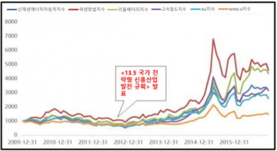 <사진1>- 도표<13.5 규획기간 부분 전략형 신흥산업 증시 지수 변화>