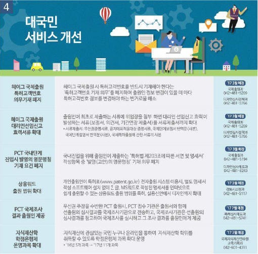 특허청(청장 최동규)은 지재권 제도 개선, 출원인 편의증진 등을 골자로 하는 ‘2017년 새롭게 달라지는 지식재산 제도․지원시책’을 3일 발표했다.