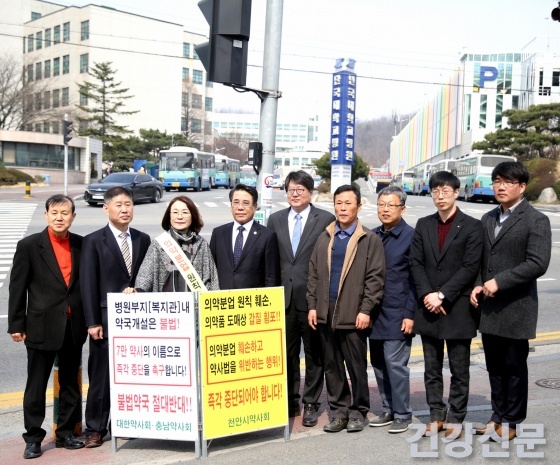 특히 “의료기관 부지나 시설을 분할한 장소에는 약국 개설이 불가능하다는 것이 판례로 확인되고 있다”고 강조하고 “충남지부와 함께 모든 방법을 동원해 약국 개설을 저지하는데 힘을 집중하겠다”고 덧붙였다.