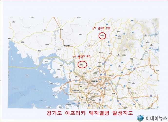 16일 아프리 돼지열병 의심 발생신고되어 17일 파주에서 첫 확진 판정이 난 지 하루만에 30km 정도 거리의 연천군에서 아프리카 돼지열병 확진 판정되어 앞으로 확산 우려가 커지고 있다.