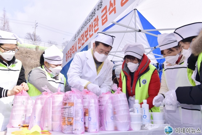 이 시장은 이날 광주시 안전보안관, 안전모니터봉사단 20여명과 함께 소고기 미역국, 새우볶음, 파김치, 김 등 아침부터 정성껏 준비한 점심식사 62인분을 격리된 시민과 의료진, 경찰, 관계자에게 배식하고 더욱 힘 내줄 것을 당부했다.