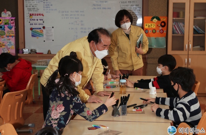 장휘국 광주시교육감이 코로나19 관련 긴급 돌봄 현장 상황을 파악하고 격려하기 위해 계수초등학교와 태봉초등학교를 방문했다.