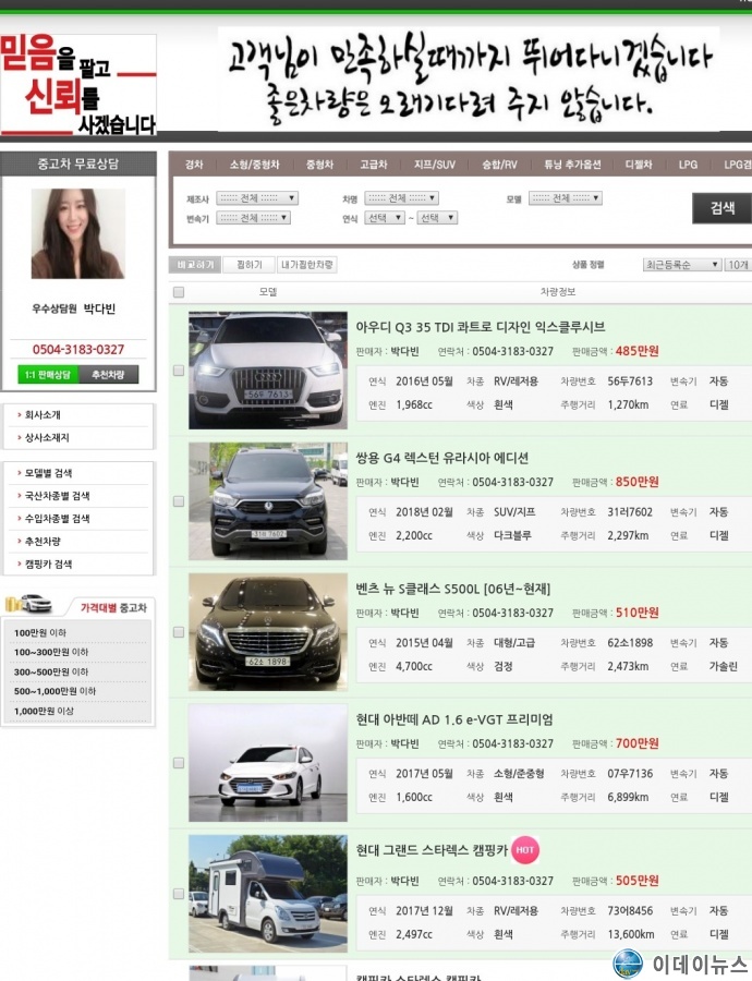 결심굳히게 된 건 홈페이지에 게재된 딜러 사진과 중고차내력