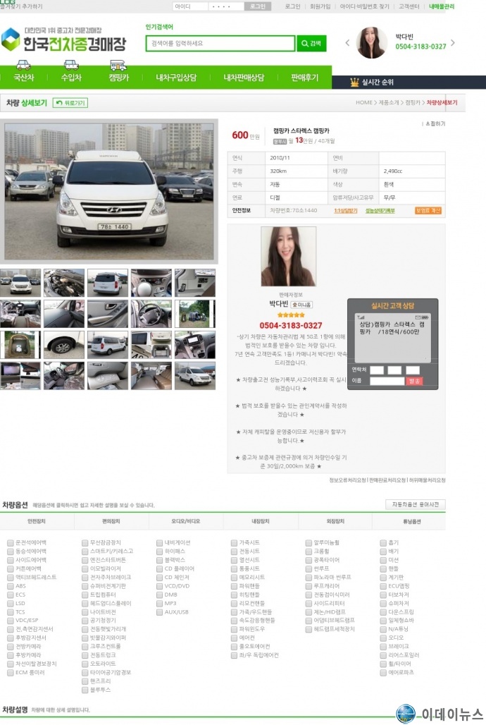 경매물로 중고 캠핑카가 다량 검색되어 인물사진까지 공개한 사이트가 있어 믿을만해 전화를 했다.
