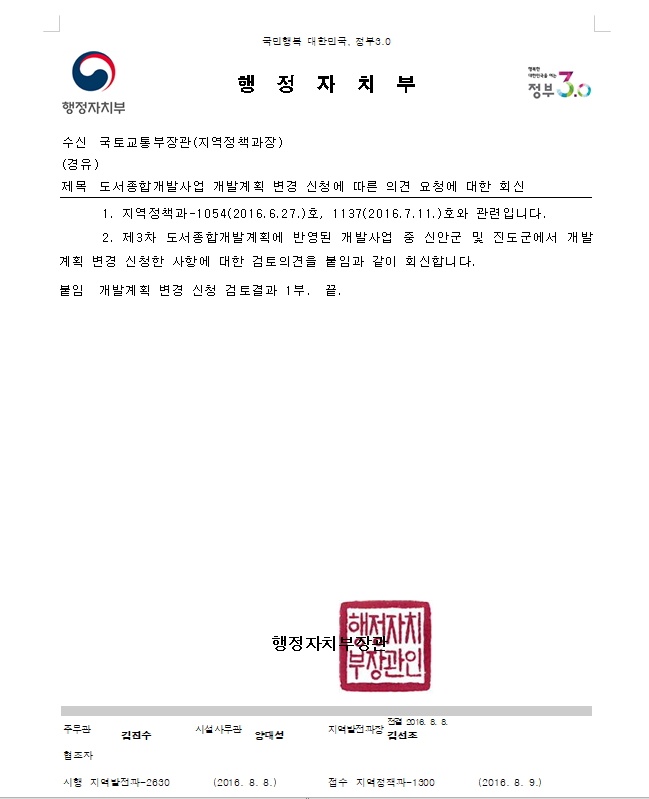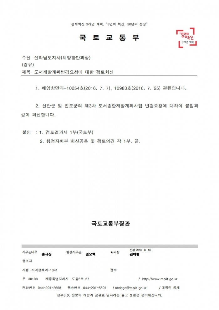 [국토부에서 진도군으로 보낸 공문과 문서]