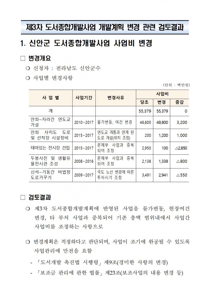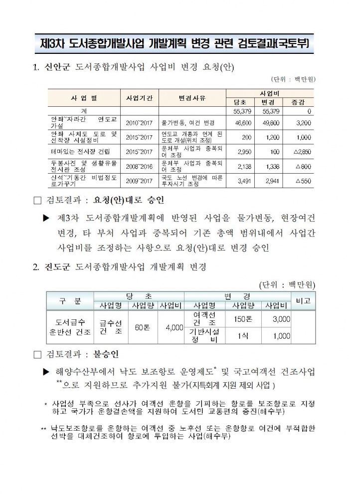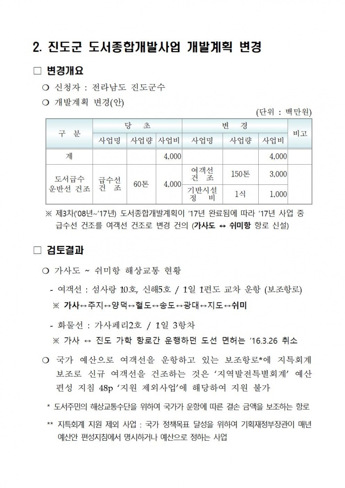 급수선 → 가사도선 사업변경 관련, 국토부 공개 문서 2
