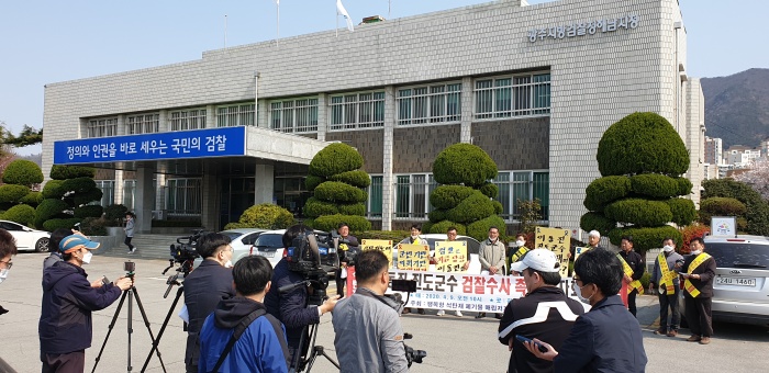 대책위는 이날 10시, 광주지방검찰청 해남지청 앞에서 기자회견을 갖고 "2016년부터 현재까지 팽목항 폐기물 반입에 대한 숱한 의혹을 제기하면서도 진도군과 이동진 군수가 스스로 석탄재 폐기물업체와 유착 의혹을 떨치고 진도토사로 이 사업을 조속히 마무리해 줄 것을 요청했다"면서 "그러나 최근 이동진 군수는 공무원 조직을 동원해 코로나19 비상방역 정부지침을 위반하면서까지 진도군청, 각 읍·면사무소에서 군민들을 상대로 관제 데모를 여는 등 상식적으로 이해할 수 없는 독선 행정을 하고 있다"고 비판했다.