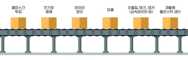 폐마스크는 특성상 철재 와이어와 귀 끈을 분리해야만 재활용이 가능한데 일일이 사람 손으로 1000억개가 넘는 마스크의 와이어와 귀 끈을 분리할 수 없기에 체계화된 설비를 통해 이러한 물량적 한계를 극복하고 사업 시스템으로 전환해 대응한다.