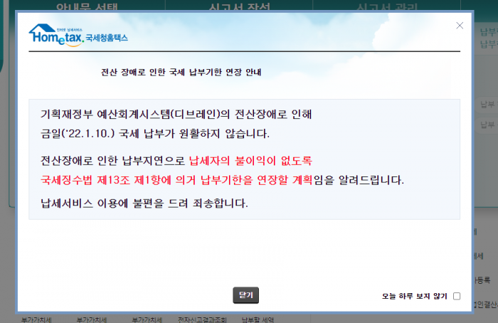 10일 오전 납세자들이 인터넷으로 국세를 납부할 수 있는 국세납부전산시스템에 오류가 발생해 많은 자영업자들과 기업들이 큰 불편을 겪고 있다.