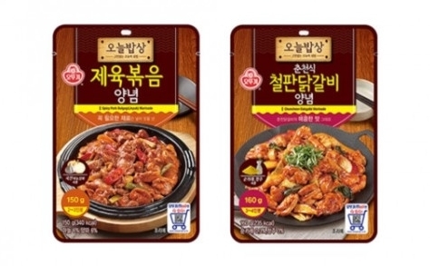 오뚜기가 양념장 HMR 브랜드 오늘밥상을 통해 ‘제육볶음 양념’과 ‘춘천식 철판 닭갈비 양념’을 출시했다.