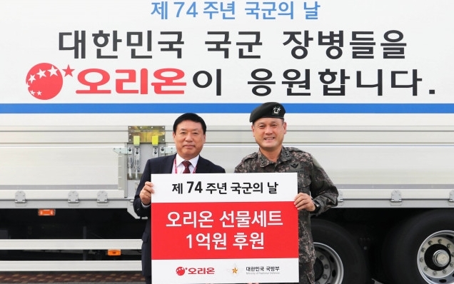 오리온그룹은 제74주년 국군의 날을 맞아 국군 장병에게 오리온 제품을 담은 총 1억원 상당의 선물 세트 1만 상자를 후원했다고 23일 밝혔다.