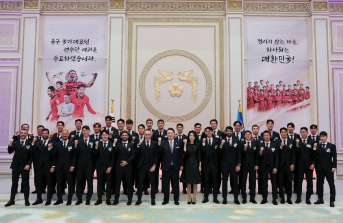 윤 대통령은 환영 인사에서 ‘꺾이지 않는 마음‘으로 끝까지 도전하는 선수들의 모습에서 커다란 울림을 받았다고 말씀하였다. 많은 국민들이 밤잠을 설쳐가며, 혹은 영하의 추위 속에서도 대표팀과 한마음이 되어 응원하는 모습에 가슴이 뭉클했다고 소회를 밝히며 땀과 노력을 믿고 하나의 목표를 향해 도전하는 정신, 끝까지 포기하지 않는 정신이 국가대표와 우리 국민을 하나로 묶는 힘이 되었다고 강조하였다.