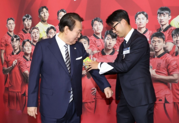 대통령 부부는 영빈관 2층 리셉션장에서 참석자 전원을 맞아 인사를 나눴고, 이때 손흥민 선수는 대회 중에 착용한 주장 완장을 대통령께 직접 채워드리며 대통령의 초청에 화답했다.