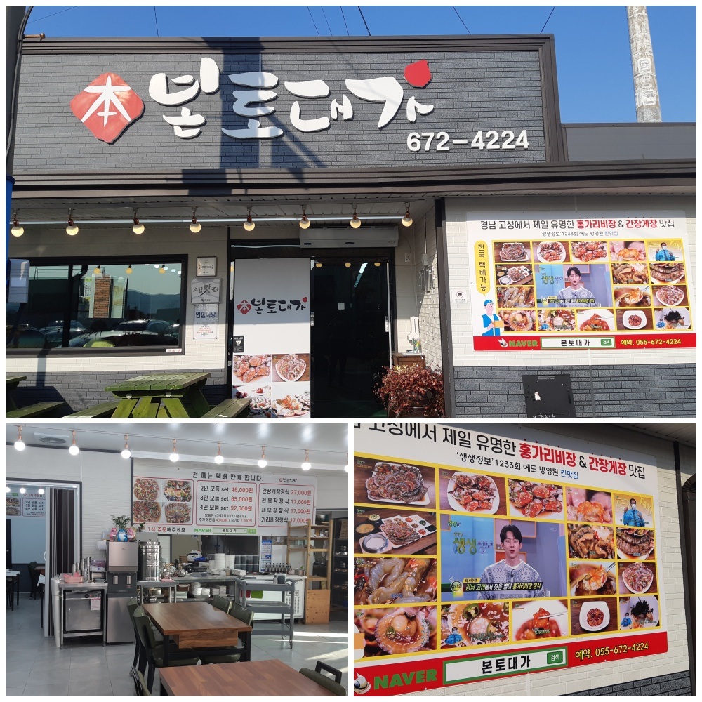 -경남 고성군 고성읍 성내로144번길 17/고성 공룡주차장 앞에 위치 -가리비장, 간장게장, 새우장 등이 짜지 않고 신선한 맛이 일품이다. 구입도 가능하다. -영업시간:11:00에 영업 시작 -0507-1428-4224