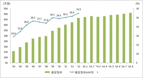 8월 말 기준 중앙정부 채무는 511조1000억원으로 전달보다 7조8000억원 늘었다.