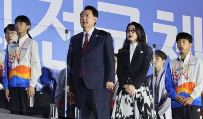 윤석열 대통령 부부는 오늘(10. 13, 금) 저녁 목포종합경기장에서 열린 제104회 전국체육대회(이하 전국체전) 개회식에 참석했다.