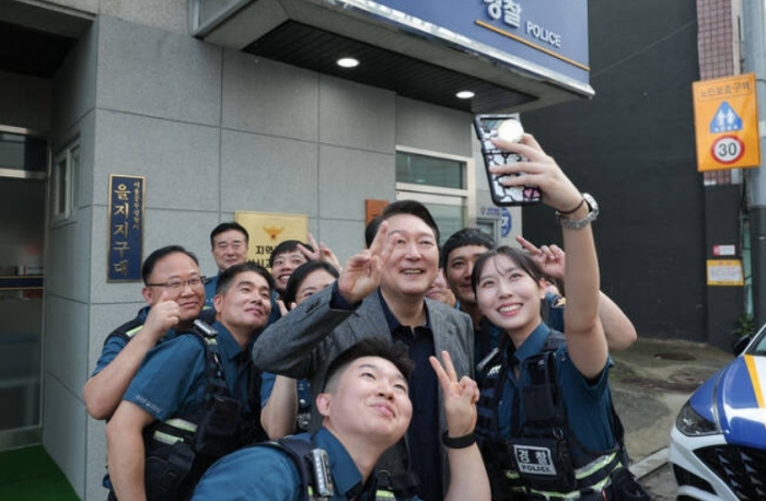 대통령은 소방서를 떠나기 전 소방대원들과 함께 기념사진 및 셀카를 찍으며 현장 방문을 마무리했다.