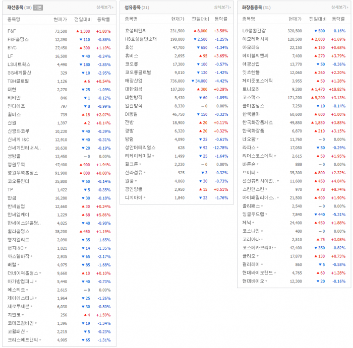 증권뉴스-패션,섬유,뷰티 업종 주가 동향