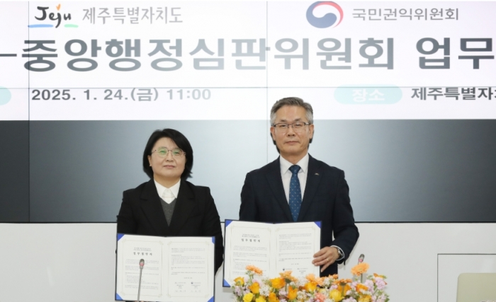 ❑ 제주특별자치도 행정심판위원회(위원장 진명기 제주도 행정부지사, 이하 ‘제주행심위’)는 24일 국민권익위원회 소속 중앙행정심판위원회(위원장 조소영 국민권익위원회 부위원장, 이하 ‘중앙행심위’)와 도청 한라홀에서 제주도민 권익 증진을 위한 업무협약을 체결했다.