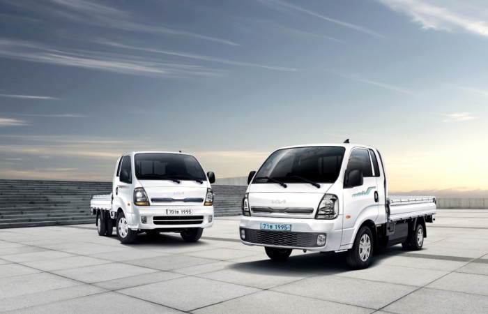 왼쪽부터 봉고 LPG 터보 1톤 2WD 초장축 킹캡 스마트 셀렉션 트림, 봉고 EV 1톤 2WD 초장축 킹캡 스마트 셀렉션 트림