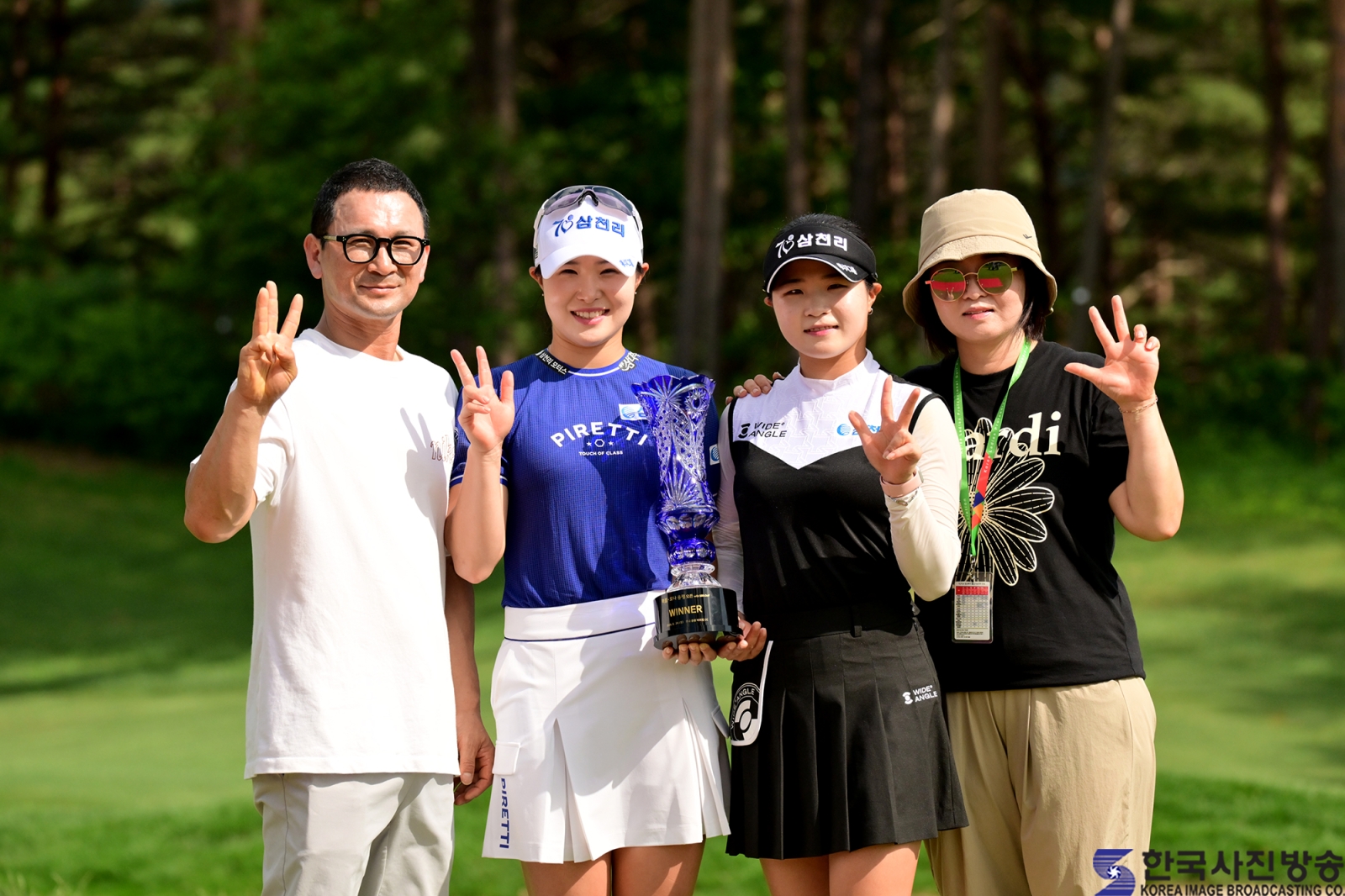 고지우 프로가 우승의 기쁨을 가족과 함께 기념 촬영을 하며 나누고 있다.