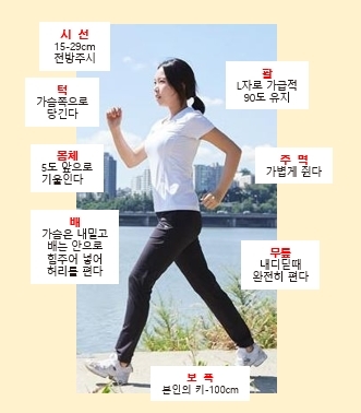 3. 팔은 90도로 굽혀 자연스럽게 흔든다.
