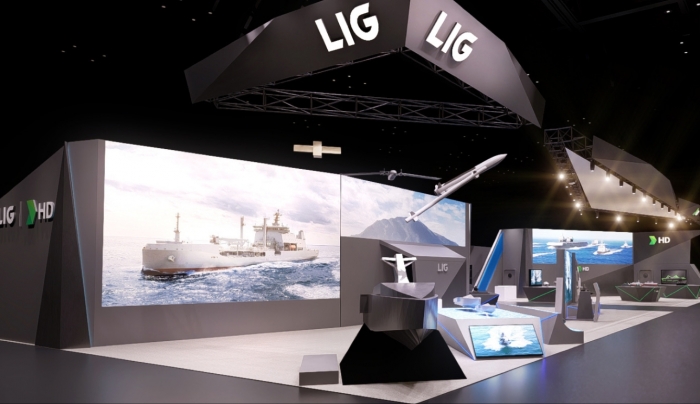 LIG넥스원은 단일 업체 기준 최대 규모(280㎡)로 전시관을 마련했다. 특히 차세대 스텔스 함정을 형상화한 부스를 HD현대중공업과 공동으로 운영한다. 대한민국 해군의 해양 유무인 복합체계(Navy Sea GHOST)를 뒷받침하기 위한 LIG넥스원만의 ‘미래 첨단 해양 무인화 솔루션’을 전시하고, 세계로 뻗어나가는 K-해양방산과 탐지·정밀타격(Sensor to Shooter), 해양 임무 솔루션을 소개한다. 또 별도로 마련된 해병대 전시 구역에는 상륙전과 해안 방어전 솔루션을 선보인다.