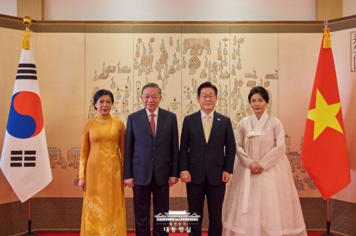 이재명 대통령 내외는 국빈방한 중인 또 럼 베트남 당서기장 내외와 8.12.(화) 오전 청와대 상춘재에서 친교 일정을 가졌다.